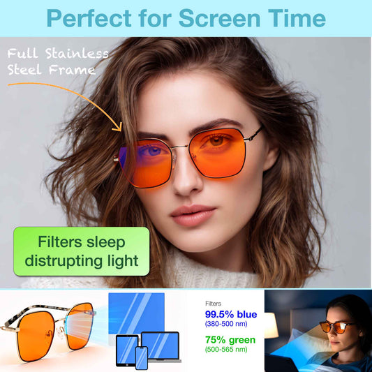 Unlike clear "blue blockers," our amber tint can improve your sleep.