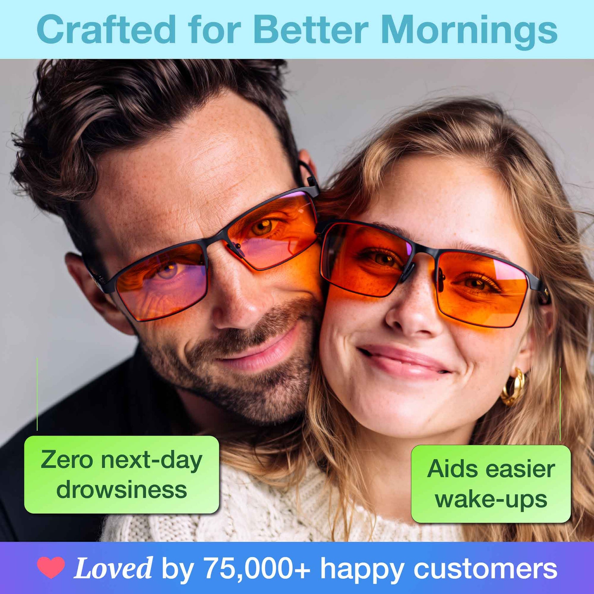 Regulate your body's internal clock with your new blue light glasses. Wake up effortlessly with a smile and full of energy from the moment you rise.